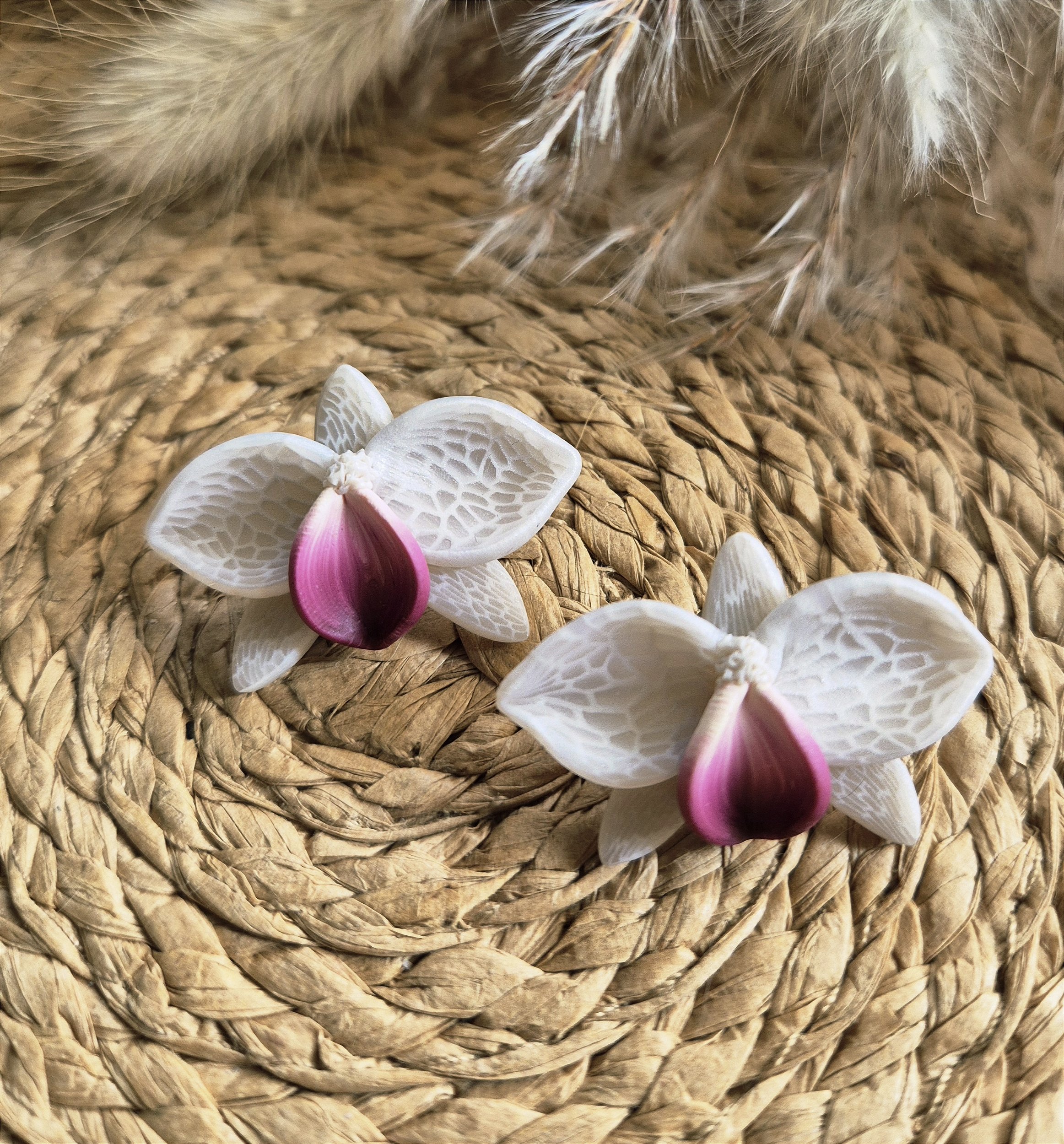 Brincos feitos manualmente em argila de polímero, leves, podem ser molhados em formato de Orquídea com leve transparência.