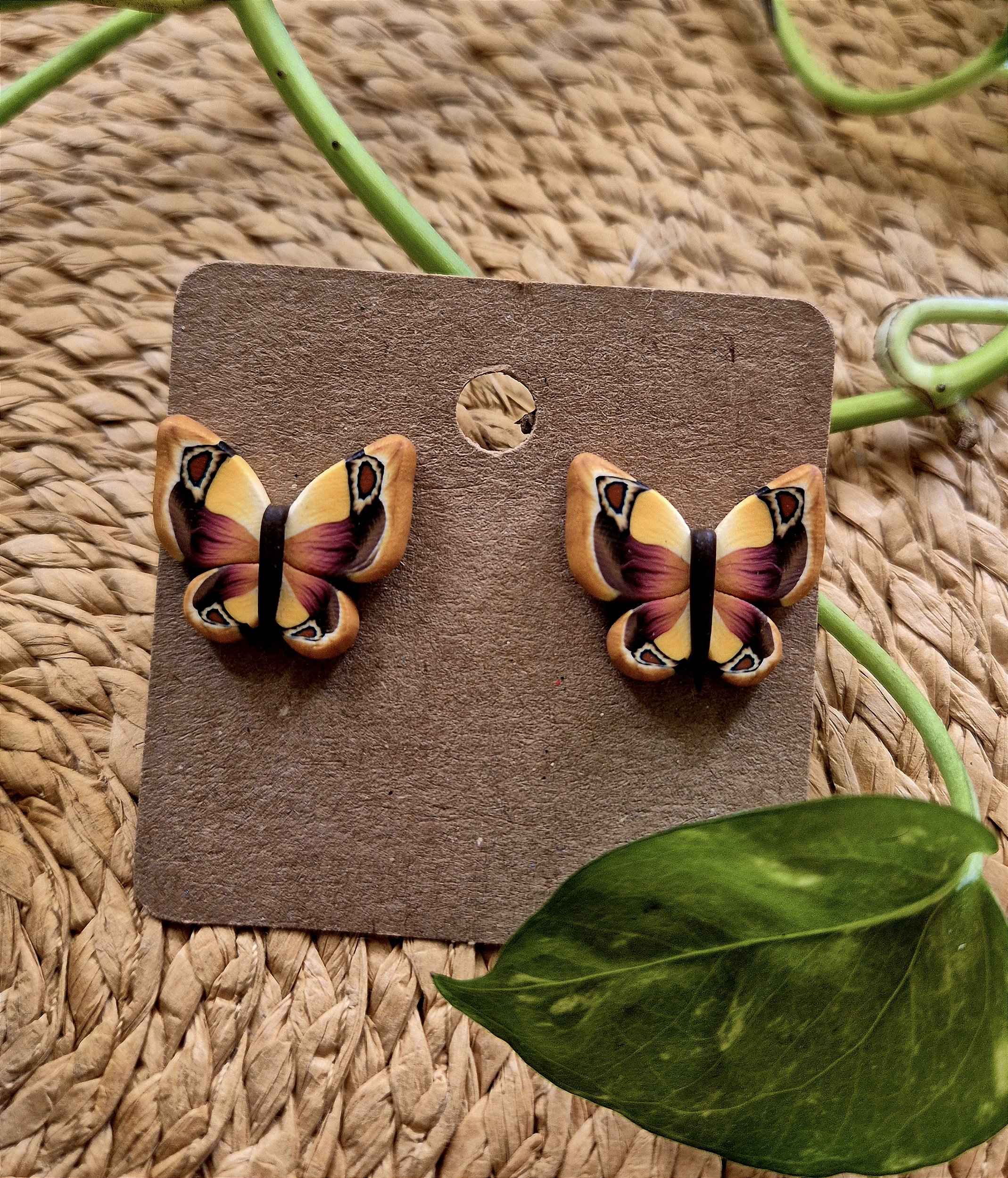 Brincos feitos manualmente em argila de polímero, leves, podem ser molhados em formato de Borboleta.